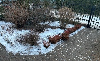 Przed budynkiem i z boku budynku, duźo miejsca na parkowanie samochodów, z tyłu budynku natomiast duży ogród z licznymi nasadzeniami i altanką.