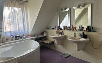 Na piętrze: - 2 sypialnie, ( pow. 11mkw i 31mkw) - pokój kąpielowy ( ok 10mkw) z wanną i kabina prysznicową - korytarz ok 7mkw.