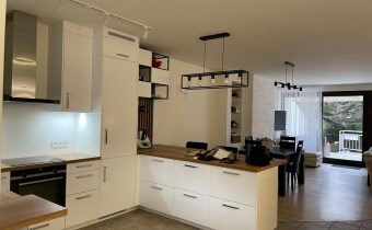 Na parterze: - przestronny, jasny salon z wyjściem na taras i ogród ( 40mkw) - jasna kuchnia ( 10mkw) - przedpokój z garderobą 6mkw - wc ( 1,5mkw) W salonie parkiet, w kuchni i holu gres.